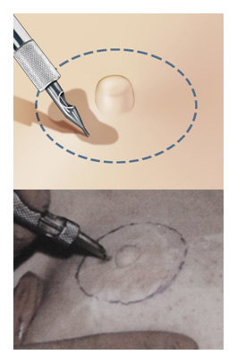 간단히 문신을 이용하여 재건하는 경우가 많으며, 문신을 이용하는 경우 여러 색의 염료를 섞어